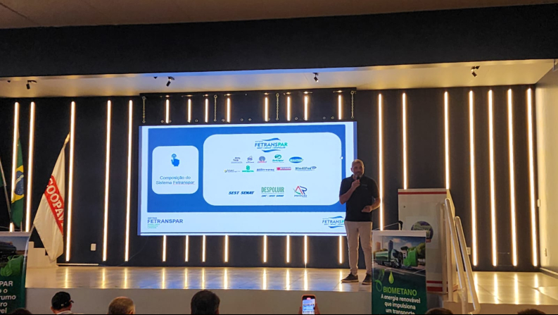 O Sistema FETRANSPAR em parceria com a Cibiogas, Compagás, RenovaPR, IDR-Paraná e Governo do Paraná, na segunda-feira (9), teve a oportunidade de apresentar aos visitantes o programa Biometano e Descarbonização de Frotas com exemplo praticados por frotas parceiras do SINTRATOL e TRANSVALE